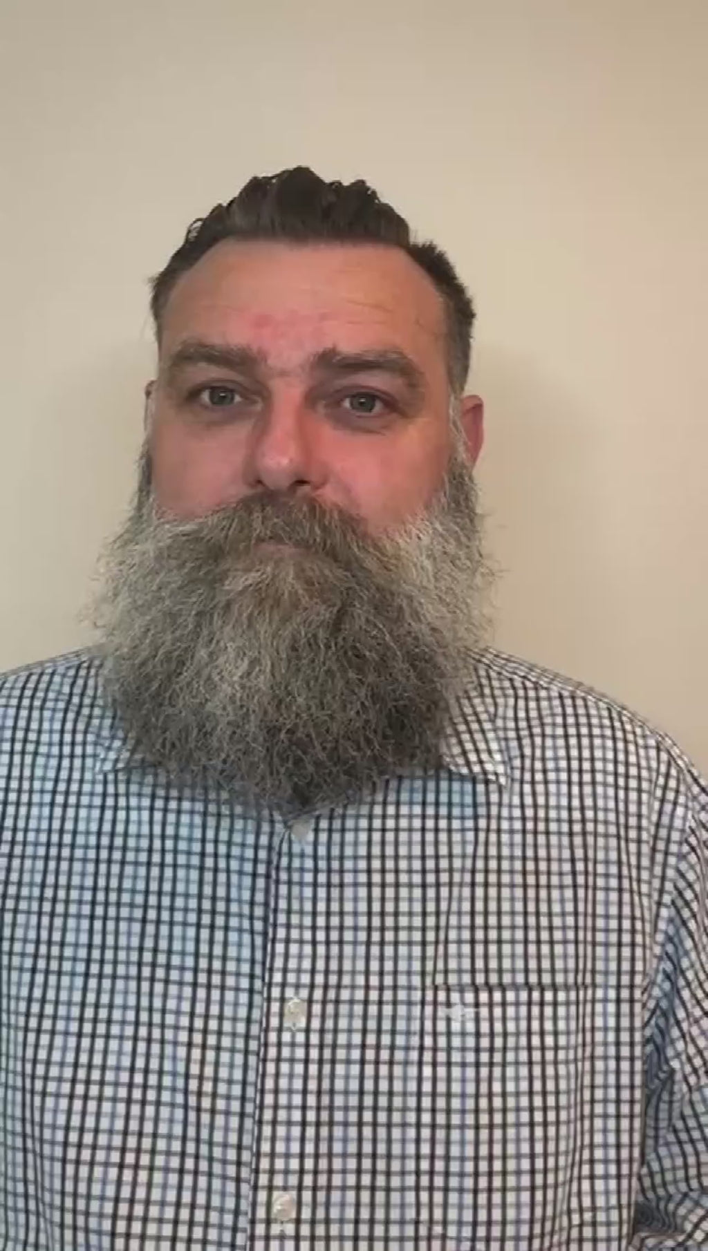 Before-and-after photos of men with long beards, showing the beard's appearance from scruffy to well-groomed after using the straightening comb.